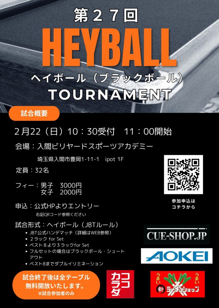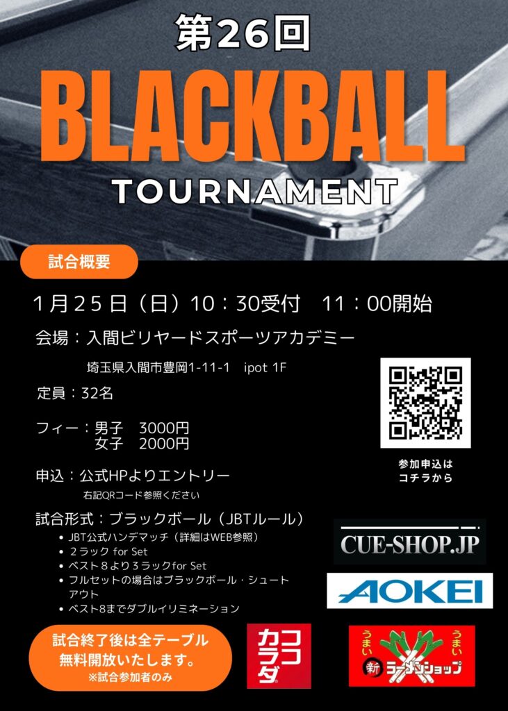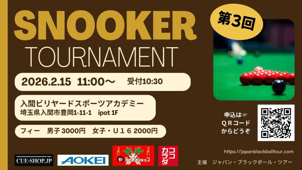 入間ビリヤードスポーツアカデミーで開催される大会の情報です